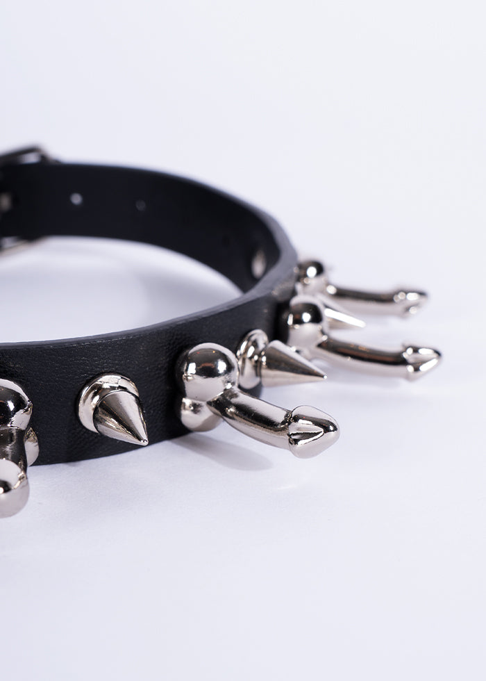 - Vegan leather choker with dick spike elements made of plated brass- Silver metal buckle fastener- Size S length: 39cm / 15.4"- Size L length: 47cm / 18.5"Fatou is 178cm / 5'8" and wears size S